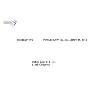 Esta ley, emitida el 15 de julio de 2016, extiende la vigencia de la “Ley de Defensa de los Derechos Humanos y la Sociedad Civil de Venezuela” de 2014 (Ley Pública 113-278), hasta el 31 de diciembre de 2019.