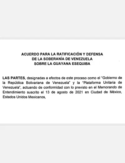 Este documento ratifica el espacio territorial y geográfico que posee la República Bolivariana de Venezuela, siendo éste el mismo que correspondía a la Capitanía General del país antes de la transformación política iniciada el 19 de abril de 1810. Representa un acuerdo firmado el 6 de septiembre en marco del proceso de negociación de Venezuela en México.