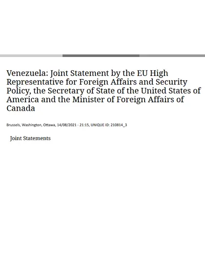 Documento que expone las declaraciones conjunta del Alto Representante de la UE para Asuntos Exteriores y Política de Seguridad, el Secretario de Estado de los Estados Unidos de América y el Ministro de Asuntos Exteriores de Canadá.
