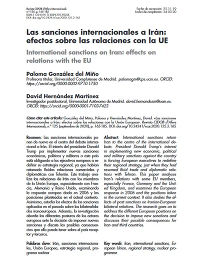 Este artículo analiza las relaciones de la República Islámica de Irán con los miembros de la Unión Europa, especialmente con Francia, Alemania y Reino Unido. Los autores examinan la respuesta europea dada en 2006 respecto al enriquecimiento de uranio en la nación, así como su actual posición tras las sanciones económicas, políticas y militares.